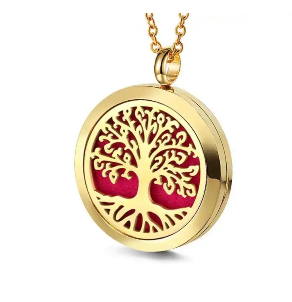 Colar com pingente para aromaterapia - Árvore da Vida - Dourado.