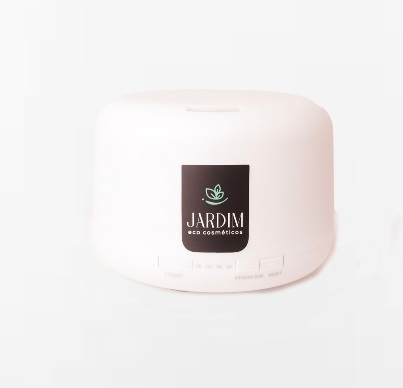 Com tecnologia ultrassônica que fragmenta a solução de água e óleos essenciais em micropartículas finas que difunde ao ar em forma de vapor frio preservando as propriedades dos óleos essenciais.
